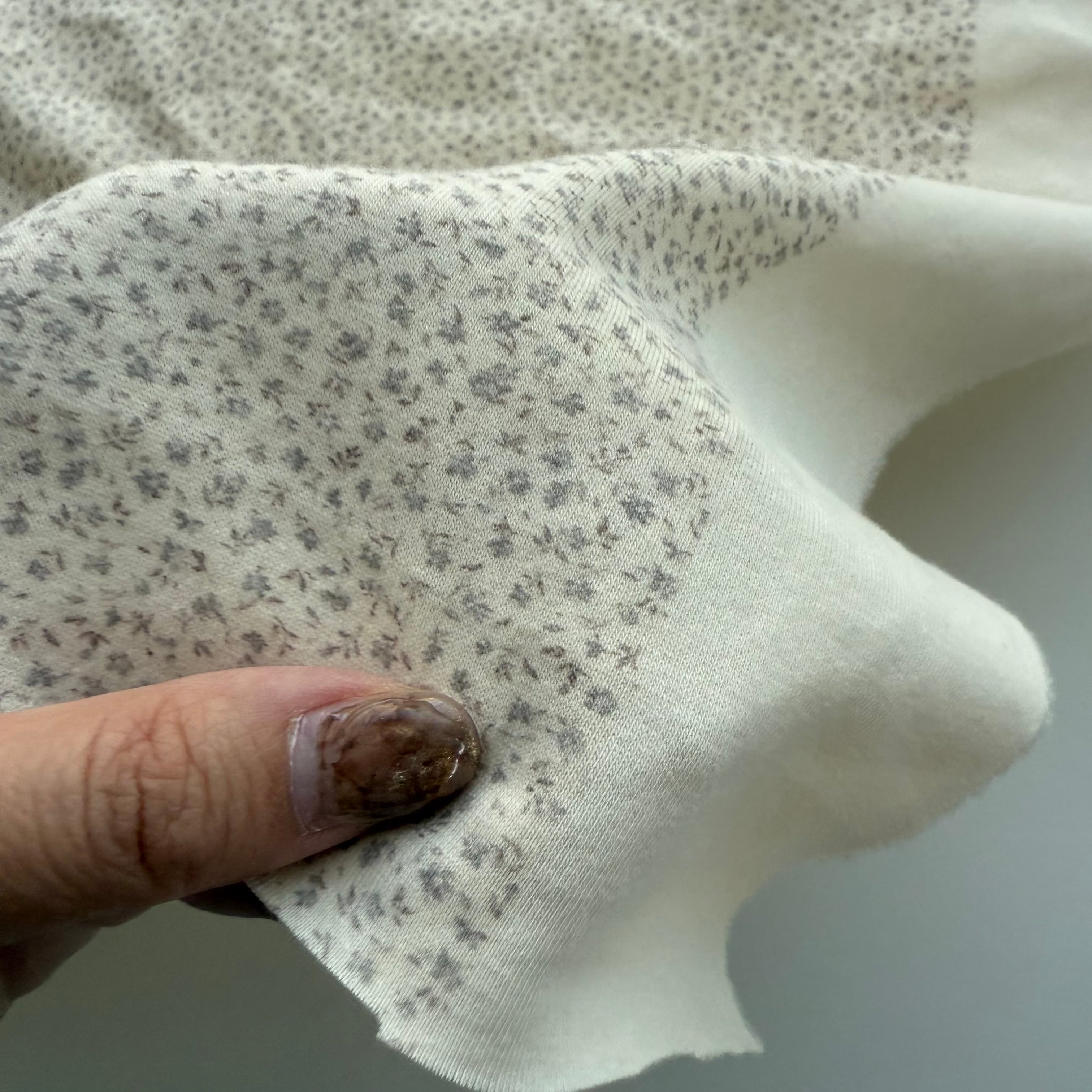 伸縮もほどよく、トップス・レギンス・ロンパースなど幅広く仕立てやすい生地感。